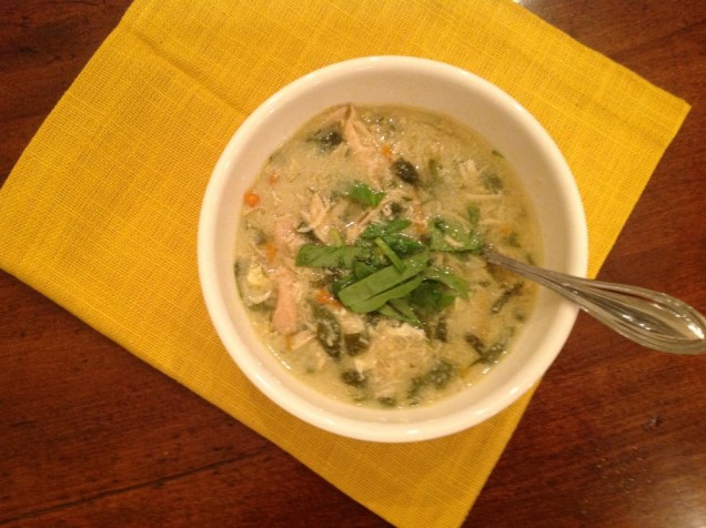 Slowly add the beaten eggs, constantly whisking the soup as you add the egg so the egg does not cook in big pieces.