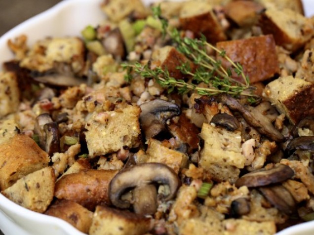 Whole Wheat Stuffing with Sausage, Pancetta and Mushrooms